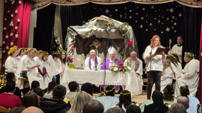 ĐAKOVO (TU) – Predbožićni susret za osobe s poteškoćama u razvoju, njihove roditelje i prijatelje đakovačke regije održan je 20. prosinca 2025. u organizaciji Doma duhovne pomoći Milosrdnih sestara sv. Križa u Đakovu i u suradnji sa đakovačkom Župom Svih svetih. Susret ima tradicionalno regionalni karakter i ove je godine privukao rekordno velik broj sudionika, oko 270, od toga je bilo 160 osoba sa invaliditetom. Sudjelovale su: Zajednica iz Ivankova; udruga „Duga“ iz Semeljaca; udruga „Neven“ iz Đakova; zajednice Vjera i Svjetlo iz Sl. Broda, Vinkovaca, i Osijeka i drugi sudionici iz Đakovštine. Po prvi puta su na susret došli članovi iz osječkog Centra “JA kao i TI“, a sudionici su pristigli i iz susjedne Vojvodine: iz župe Bikovo i udruge „Pontis“ iz Subotice. Najbrojniji su bili članovi Terapijske radionice sv. Josipa i zajednice Vjera i Svjetlo iz Đakova.