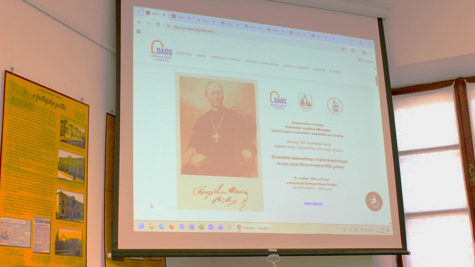 OSIJEK (TU) – U Državnom arhivu u Osijeku u srijedu, 15. travnja 2026. predstavljen projekt digitalizacije i mrežne objave digitaliziranog arhivskoga gradiva ostavinskog predmeta nakon smrti biskupa Josipa Jurja Strossmayera 1905. godine. Predstavljanje projekta zajednički je program Državnog arhiva u Osijeku, Đakovačko-osječke nadbiskupije i HAZU Zavoda za znanstveni i umjetnički rad