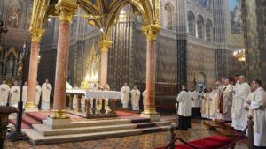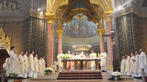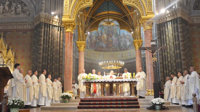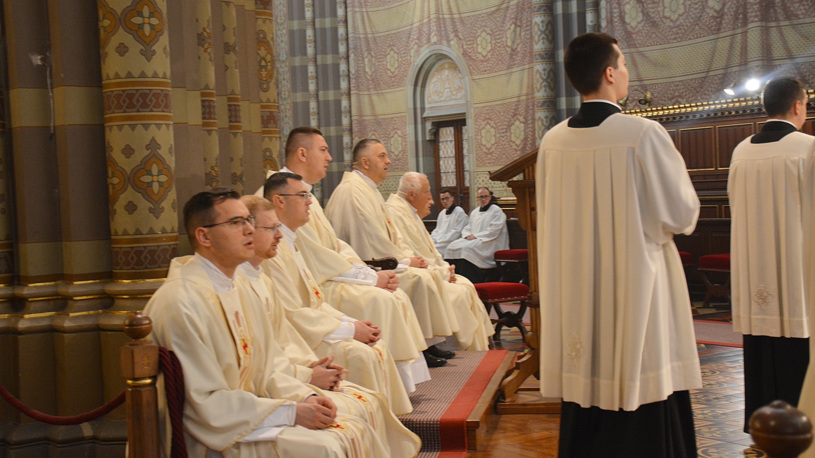 ĐAKOVO (TU) – Đakovačko-osječki nadbiskup Đuro Hranić i veliki kancelar Katoličkog bogoslovnog fakulteta u Đakovu u četvrtak, 6. studenoga 2025. predvodio je misno slavlje u katedrali sv. Petra povodom proslave 219. dana KBF-a. Uz pomoćnog biskupa Ivana Ćurića i generalnog vikara Srijemske biskupije Josipa Ivešića, dekana KBF-a Ivicu Pažina i rektora Bogoslovnog sjemeništa Stjepana Radića koncelebrirala su još četrnaestorica svećenika, profesora KBF-a i drugih gostiju. Posluživali su novozaređeni đakoni Karlo Strišković i Herman Kodjo, a u asistenciji su bili đakovački bogoslovi.
