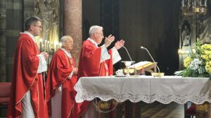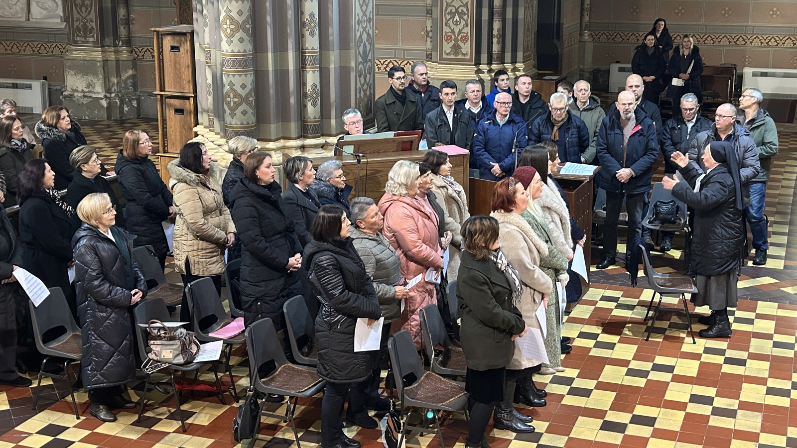 ĐAKOVO (TU) – Večernje misno slavlje u đakovačkoj katedrali o blagdanu sv. Cecilije 22. studenoga 2025. predvodio je preč. Mato Gašparović, ravnatelj Ustanove za uzdržavanje klera i kustos katedrale sv. Petra u Đakovu. Koncelebrirali su mons. Luka Marijanović, kanonik i vlč. Mihael Macanić, župni vikar Župe Svih svetih u Đakovu. Misno su slavlje pjesmom animirali združeni Mješoviti katedralni zbor i Zbor Župe Svih svetih Santo načelu sa s. Jelenom Kovačević koja je dirigirala, a za orguljama je bio mo. Ivan Andrić katedralni regens chori.