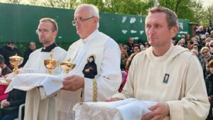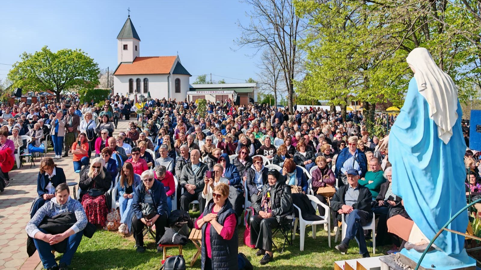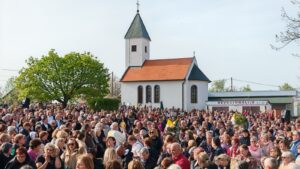 OVČARA (TU) – Na drugu vazmenu nedjelju, 12. travnja 2026., ujedno i svetkovinu Božjeg milosrđa, brojni hodočasnici pohodili su prvo hrvatsko svetište Božjeg milosrđa na Ovčari kod Đakova sudjelujući u svečanoj proslavi istoimene svetkovine koja je i ove godine protekla u molitvenom ozračju. Nekoliko tisuća hodočasnika s područja Đakovačko-osječke nadbiskupije, Požeške biskupije, Moslavine,