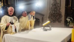 OSIJEK (TU) – Svetkovina svetog Franje Asiškog, utemeljitelja i duhovnog nadahnitelja mnogih redovničkih zajednica i pokreta, svečano je proslavljen u subotu, 4. listopada u samostanskoj crkvi svetog Jakova st. kod osječkih franjevaca kapucina. Večernje euharistijsko slavlje, uz koncelebraciju gvardijana fra Jure Šimića, predvodio je vlč. Siniša Paušić, župnik iz Podravskih Podgajaca koji je ujedno i franjevački trećoredac.