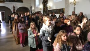Nakon pročitanog evanđelja su članovi Vjere i svjetla uprizorili evanđeosku sliku dana o upornoj udovici i nepravednom sudcu, a vlč. Tigandžin je u kratkoj propovijedi naglasio da postoje milosrdni suci i da je upravo naš Bog milosrdni sudac iako možda i odgađa našu stvar. „Radujemo se da možemo biti pripravni za svaku nedjeljnu svetu misu, Bog očekuje našu čežnju, možda mi molimo jedno a Bog očekuje od nas da tražimo nešto drugo. Molimo Boga da nam da snage da molimo jedni za druge pa i za naše neprijatelje.“