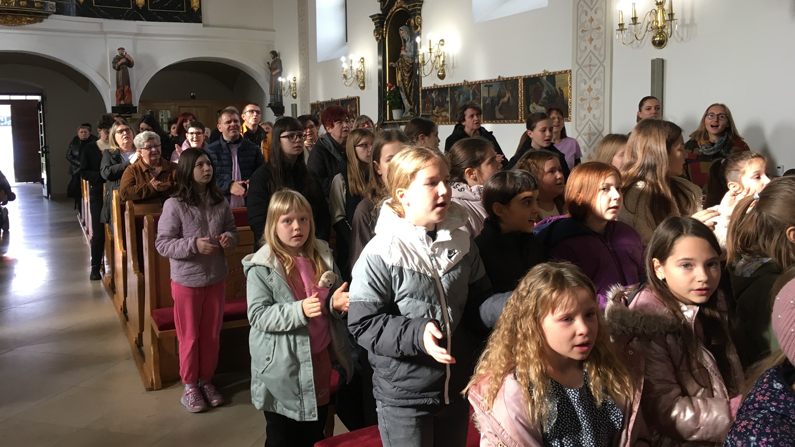Na početku mise okupljenima se obratio domaći župnik preč. Josip Antolović koji je kazao: „Najljepše je da smo u crkvi oko oltara kada Vjera i svjetlo ove župe proslavlja 25 godina života među nama. Veliki je ovo dan, srebrni jubilej, od sada idemo dalje prema zlatu, “ te je pozdravio goste iz istoimenih zajednica iz Belišća, Valpova, Osijeka, Sl. Broda i Đakova.“ Misno slavlje pjesmom je pratio župni dječji zbor MIR predvođen s. Kristijanom Kolić.