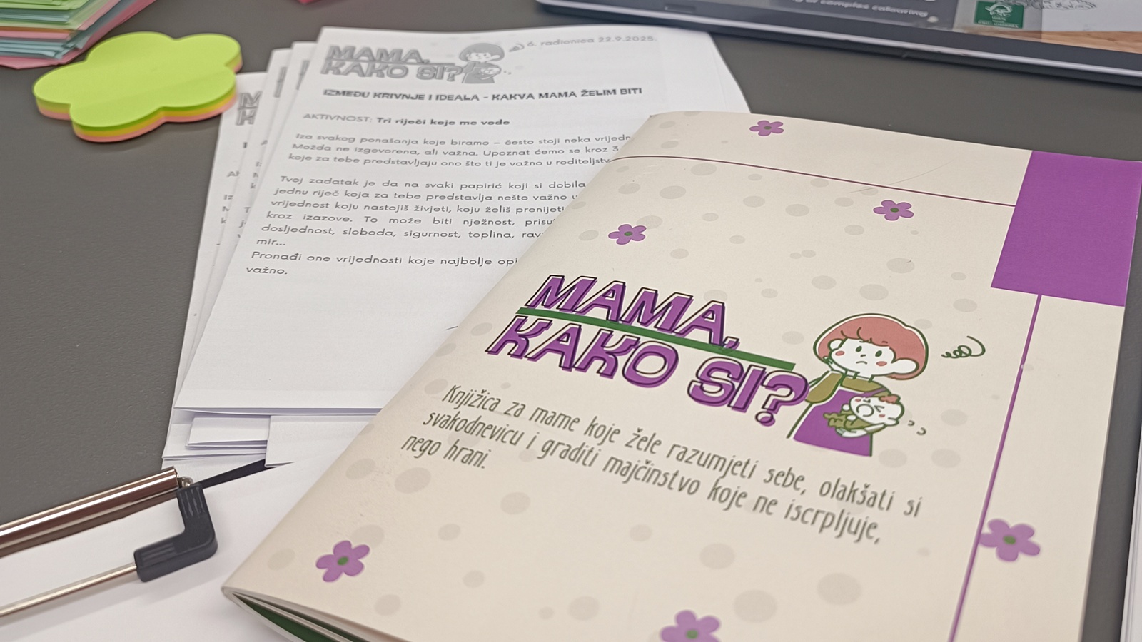 U sklopu projekta izrađena je psiho-edukativna knjižica koja sažima ključne teme i poruke ciklusa radionica. Svako poglavlje prati jednu radionicu i donosi kratke uvide, praktične zadatke i ohrabrujuće poruke, pružajući majkama i obiteljima alat za samopodršku i osnaživanje u svakodnevnom roditeljstvu. Knjižica omogućuje da iskustva i znanja stečena tijekom projekta ostanu dostupna i nakon njegovog završetka. Primjerak je podijeljen sudionicama na završnom susretu, a dostupna je i online za pregled i preuzimanje https://drive.google.com/file/d/17jxCwOjxVNDCyJMV6kdHxsSJrwEmV3H4/view?usp=sharing . Ivana Stvorić