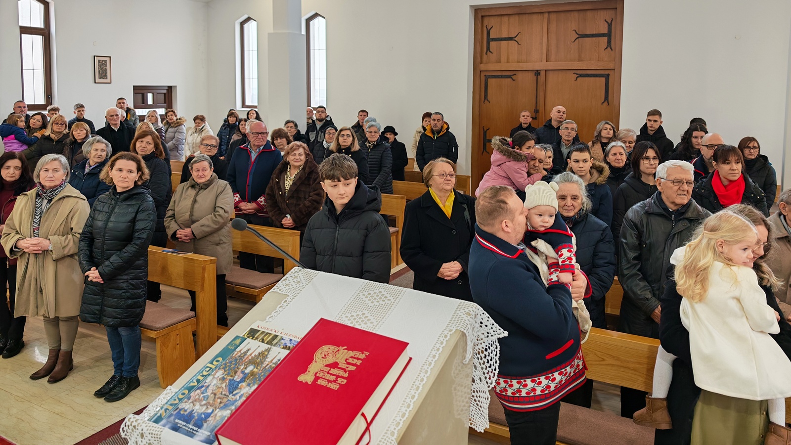 BARTOLOVCI (TU) – Djevojčica Rita prvo je dijete Marija i Antonije Wurzberg i ujedno i prva koja je po sakramentu svetog krštenja ucijepljena u Krista u novoposvećenoj filijalnoj crkvi svetog Ivana Pavla II. u Bartolovcima. Malenu Ritu krstio je za misnoga slavlja 18. siječnja 2026. vlč. Ilija Janjić, župnik Župe sv. Marka Slobodnica, kojoj pripada filijala Bartolovci.