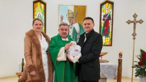 Radosni roditelji, Mario i Antonija Wurzberg svoju ljubav i bračno zajedništvo okrunili su pred Gospodinom prije trinaest godina, a plod njihove ljubavi ostvaren je u studenome 2025. godine kada se nakon puno godina molitve, ustrajnosti u vjeri te potpunom pouzdanju u Gospodina, na radost članova obitelji, prijatelja i cijele župne zajednice rodila djevojčica Rita, njihovo prvo dijete.