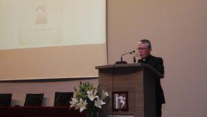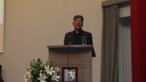 U prvom dijelu večeri, mr. Drago Marković održao je izlaganje o životu i djelovanju Pere Ivanišića Crnkovačkog koji je obilježio đakovačku teološku školu u prvoj polovici 20. stoljeća. U svom govoru istaknuo je Ivanišićev doprinos dogmatskoj teologiji i njegovu pionirsku ulogu u ekumenskim istraživanjima te povezanost vjere i kulture u njegovu teološkom promišljanju. Posebno je naglasio njegovu sposobnost da spoji znanstvenu ozbiljnost i duhovnu dubinu, kao i razumijevanje glazbe kao jezika teologije i sredstva evangelizacije. Predavanje je završilo osvrtom na trajnu vrijednost Ivanišićeva djela koje, unatoč vremenskoj distanci, ostaje nadahnuće suvremenim teolozima i vjernicima.