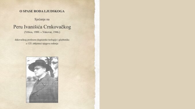 “O spase roda ljudskoga” – Sjećanje na Peru Ivanišića Crnkovačkog (Vrbica, 1900. – Vukovar, 1946.) – đakovačkog profesora dogmatske teologije i glazbenika o 125. obljetnici njegova rođenja održat će se večer uoči proslave “Dies Facultatis” Katoličkog bogoslovnog fakulteta u Đakovu, u srijedu, 5. studenoga s početkom u 19:30 u Dvorani biskupa Antuna Mandića Središnje nadbiskupijske i fakultetske knjižnice u Đakovu.