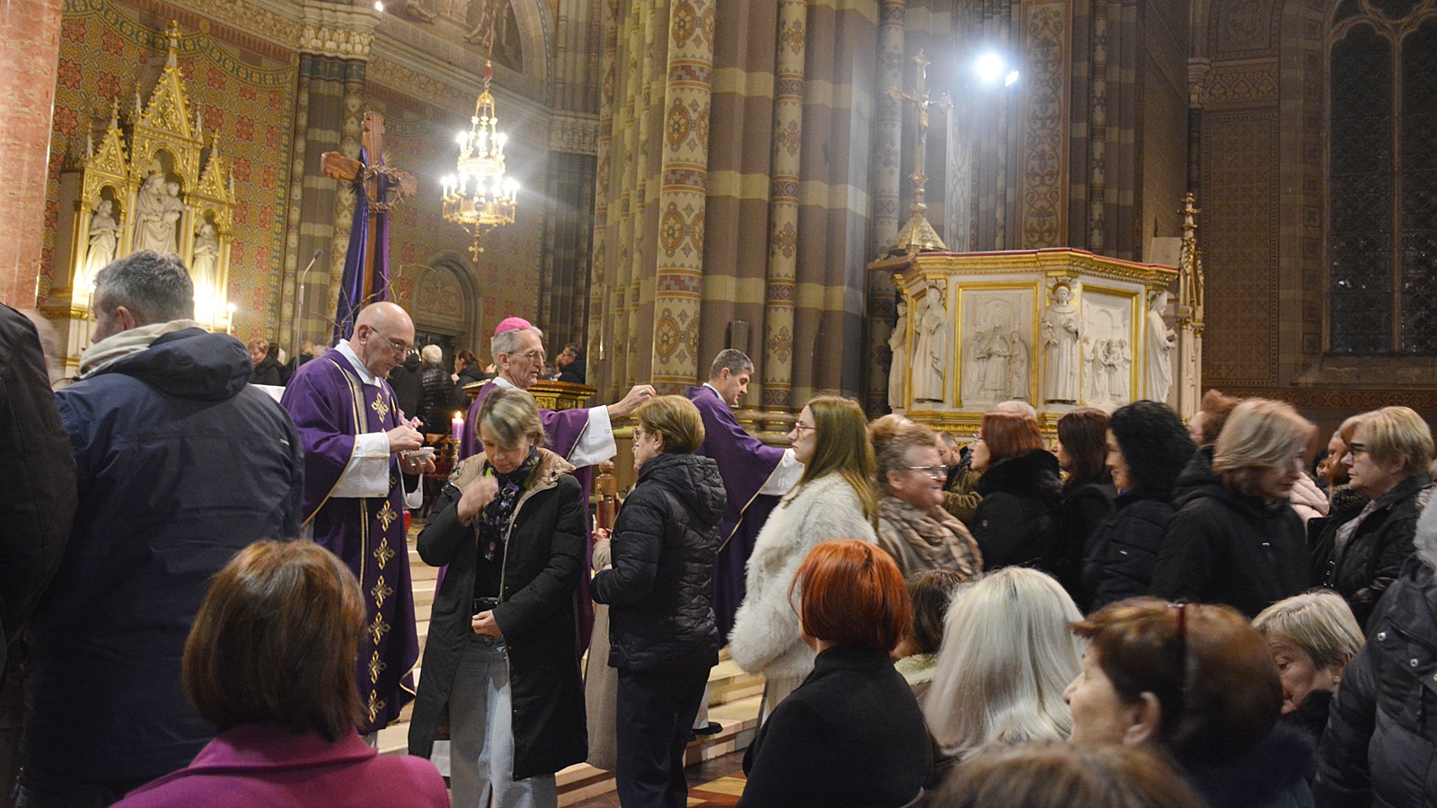 Uslijedio je blagoslov pepela maslinovih grančica od prošlogodišnje Cvjetnice te obred pepeljenja uz riječi Spomeni se čovječe da si prah i da ćeš se u prah vratiti ili Obratite se i vjerujete evanđelju! – kojemu je pristupilo mnoštvo Đakovčana okupljenih na počeku korizmenog hoda.