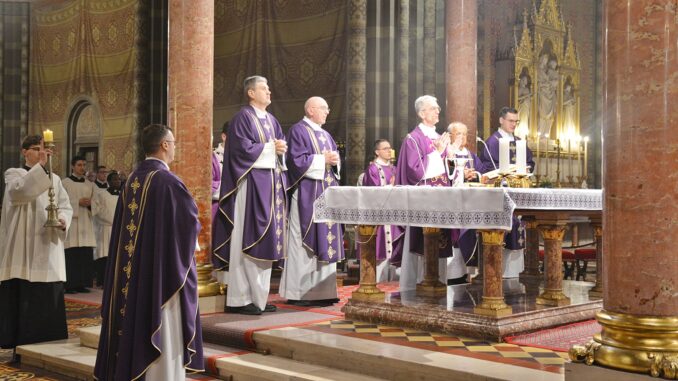 ĐAKOVO (TU) – Svečano večernje misno slavlje Pepelnice u đakovačkoj katedrali u srijedu, 18. veljače 2026. predvodio je đakovačko-osječki pomoćni biskup Ivan Ćurić. Koncelebrirali su katedralni župnik Alojz Kovaček, rektor Bogoslovnog sjemeništa dr. Stjepan Radić, vicerektor dr. Davor Senjan, kanonik Prvostolnog kaptola mons. Luka Marijanović i tajnik Nadbiskupskog ordinarijata Nikola Klemen. Kod oltara su u asistenciji bili đakovački bogoslovi. Na misi je pjevao Mješoviti katedralni zbor pod ravnanjem mo. Ivana Andrića i orguljsku pratnju mo. Vinka Sitarića.
