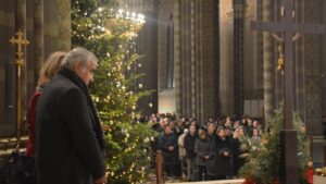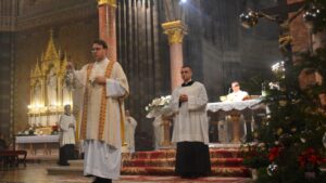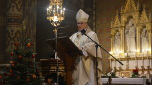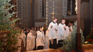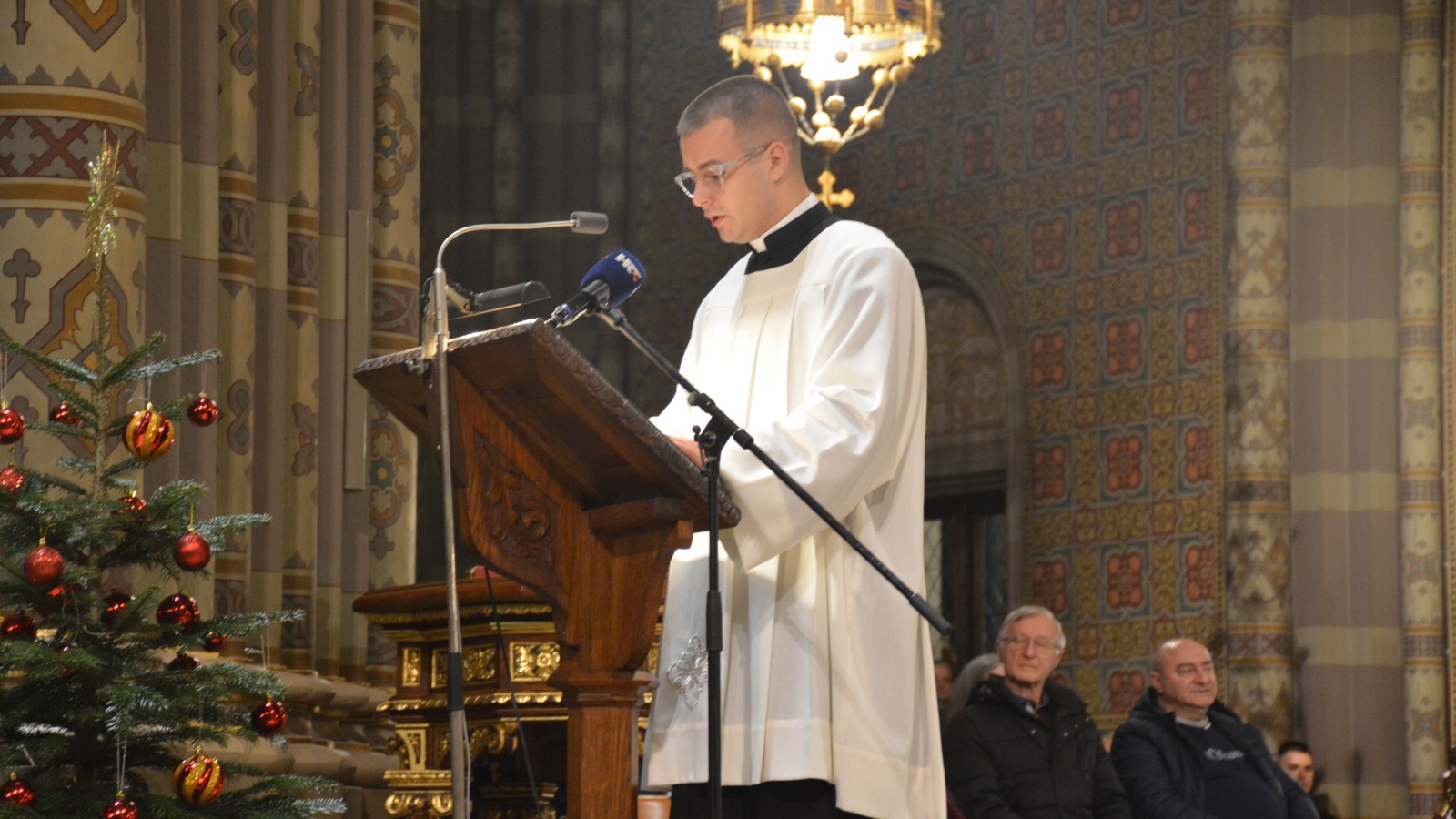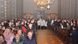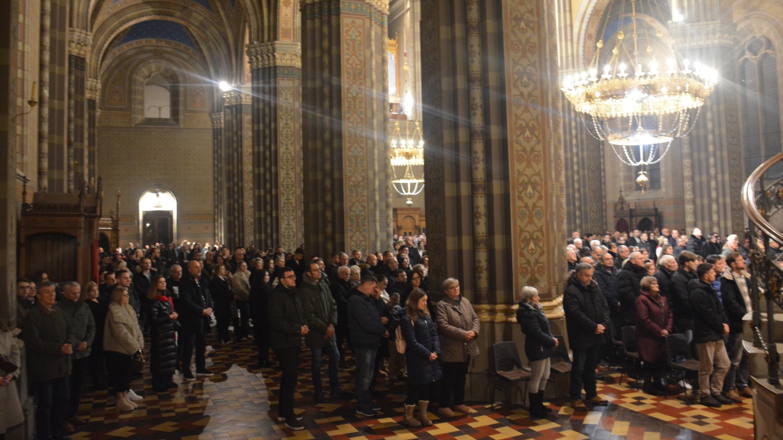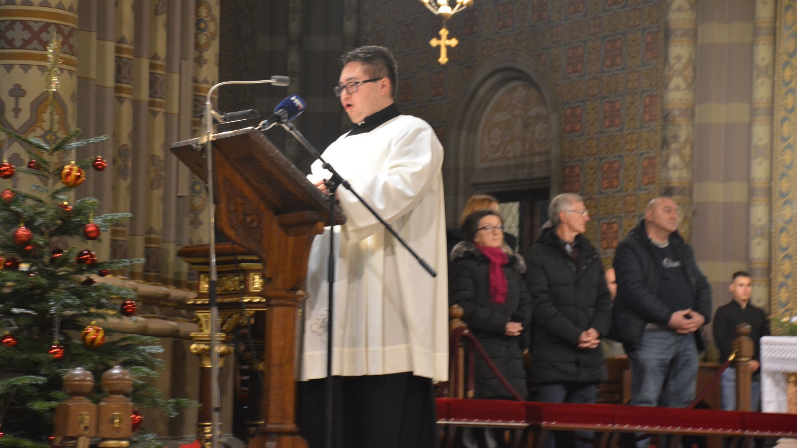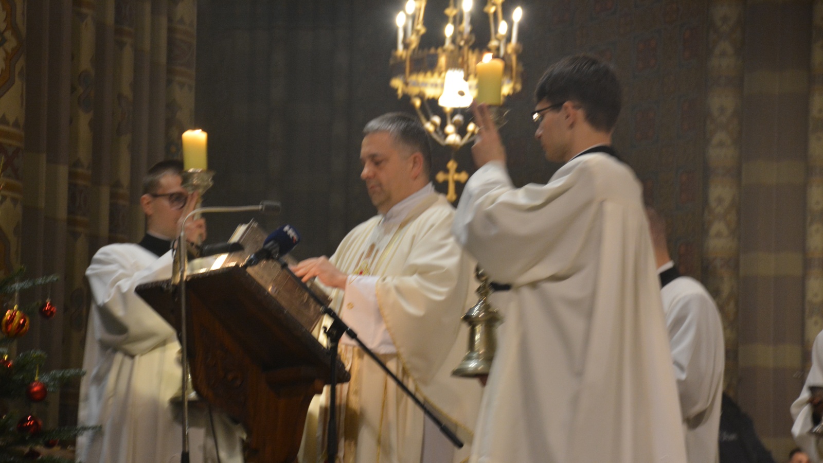 ĐAKOVO (TU) – Svečano euharistijsko slavlje mise polnoćke u katedrali sv. Petra u Đakovu 24. prosinca 2025. predvodio je đakovačko-osječki nadbiskup metropolit Đuro Hranić. U koncelebraciji su bili: preč. Alojz Kovaček, katedralni župnik; mons. Luka Marijanović, kanonik; vlč. mr. Dario Hrga, kancelar Nadbiskupskog ordinarijata; preč. Stjepan Maroslavac, administrator Vjesnika; vlč. Nikola Klemen, tajnik Ordinarijata i vlč. Mihael Macanić, župni vikar. Posluživali su đakovački bogoslovi, a liturgijsko pjevanje predvodio je Mješoviti katedralni zbor na čelu s mo. Ivanom Andrićem i orguljsku pratnju mo. s. Josipe Pavle Jakić.