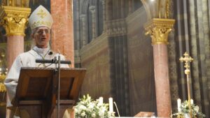 A zatim se mons. Ćurić obratio sestrama sv. Križa (…) spominjući se između ostaloga i blagopokojnog pape Franje koji je i sâm bio redovnik: „On nas je, baš na prošlogodišnju Svijećnicu htio podsjetiti da život posvećenih osoba „još više ističe ljepotu stvorenih stvari“, da nas svojim svjedočanstvom „čuva od egoizma, pohlepe i ovisnosti, a upućuje na umjerenost, velikodušnost i solidarnost“. A koji dan poslije Križeva prošle godine, također redovnik novi papa Lav XIV. ohrabrivao je redovničke zajednice u našem današnjem vremenu: „Nije bez razloga Duh Sveti nadahnuo one koji su vam prethodili da se ujedine sa sestrama i braćom koje je providnost stavila na njihov put, kako bi se u zajedništvu dobrih ljudi dobrota umnožila i rasla. Tako je bilo u počecima vaših zajednica, a tako je i sada“,“- rekao je mons. Ćurić.