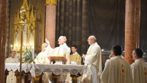 U misnom slavlju uz biskupa Ivana koncelebrirali su: vlč. Alojz Kovaček, katedralni župnik i još šestorica svećenika središnjih nadbiskupijskih ustanova. Bogoslužjem je ravnao katedralni ceremonijar vlč. mr. Dario Hrga, kancelar Nadbiskupskog ordinarijata.