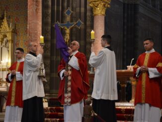 ĐAKOVO (TU) – Obrede Velikog petka u đakovačkoj katedrali, 3. travnja 2026. predvodio je katedralni župnik Alojz Kovaček, a u obredima su sudjelovali đakovačko-osječki nadbiskup Đuro Hranić, pomoćni biskup Ivan Ćurić, svećenici središnjih nadbiskupijskih ustanova, Milosrdne sestre sv. Križa i vjernici đakovačke Župe Svih svetih.
