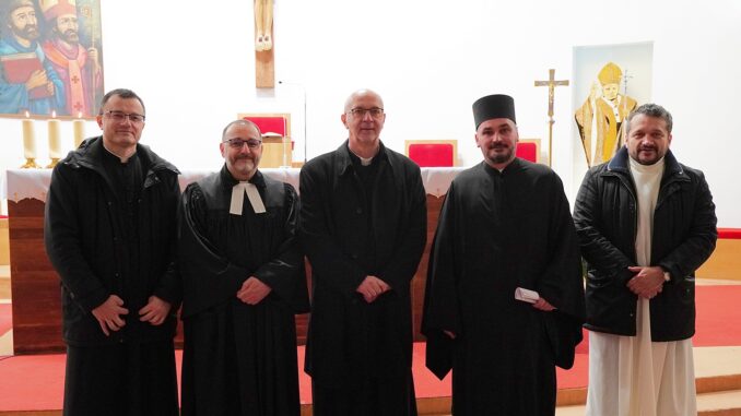 OSIJEK (TU) – Treći dan Molitvene osmine za jedinstvo kršćana u utorak, 20. siječnja 2026. održan je u Župi sv. Ćirila i Metoda u Osijeku. U molitvi su sudjelovali: Slobodan Gajdašević, đakon Srpske pravoslavne Crkve; dr. sc. Samir Vrabec, župnik Evangeličke crkvene općine Osijek te dr. Antun Japundžić, vlč. Ljubomir Sturko, don Dejan Turza i domaći župnik vlč. Ante Šiško, svećenici Katoličke Crkve.
