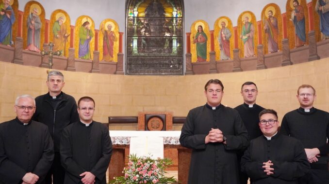 ĐAKOVO (TU) – Zajednica Bogoslovnog sjemeništa u Đakovu okupila se na bdjenju u subotu, 22. studenoga 2025. uoči podjele službe lektorata trojici bogoslova. Bdjenje je održano u sjemenišnoj kapeli Bezgrešnog začeća Blažene Djevice Marije, a nazočili su mu pomoćni biskup đakovačko-osječki Ivan Ćurić, odgojitelji, bogoslovi, časne sestre i svećenici središnjih nadbiskupijskih ustanova.