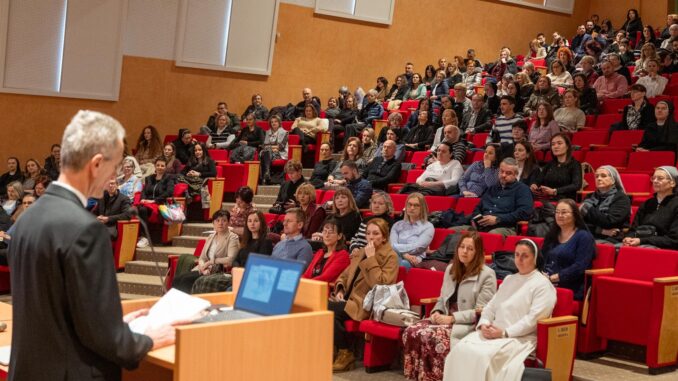 OSIJEK (TU) – Stručni skup vjeroučitelja osnovnih i srednjih škola Đakovačko-osječke nadbiskupije održan je u subotu 17. siječnja 2026. godine u prostorima Nadbiskupskog vikarijata u Osijeku. Skup je organiziran u suradnji Katehetskog ureda Đakovačko-osječke nadbiskupije i Agencije za odgoj i obrazovanje Podružnice Osijek, s temom Suvremeni izazovi odgoja i obrazovanja za poštivanje dostojanstva čovjeka kao slike Božje.