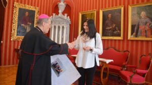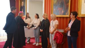 ĐAKOVO (TU) – Učenici i djelatnici prve Katoličke osnovne škole Andrije Živkovića iz Slavonskog Broda u srijedu, 29. listopada 2025. posjetili su đakovačko-osječkog nadbiskupa metropolita Đuru Hranića u Nadbiskupskom domu u Đakovu koji je osnivača te katoličke škole, a cijeli je projekt vodio dr. sc. Pavao Mikulčić, nadbiskupijski povjerenik za katoličke škole i prvi ravnatelj KOŠ Andrije Živkovića.