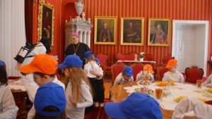 Nakon što je nadbiskup srdačno pozdravio sve goste i izrazio im dobrodošlicu djeca su sa svojom učiteljicom izvela program pjesmom, recitacijom i kratkim igrokazom. U komunikaciji s nadbiskupom Đurom rekli su da im je u školi lijepo i da bi rado još malo ostali kad roditelji dođu po njih. Nadbiskup je izrazio svoju radost zbog njihova prihvaćanja škole, školskih obveza i učenja te im kratko ispričao o povijesti zgrade Nadbiskupskog doma.
