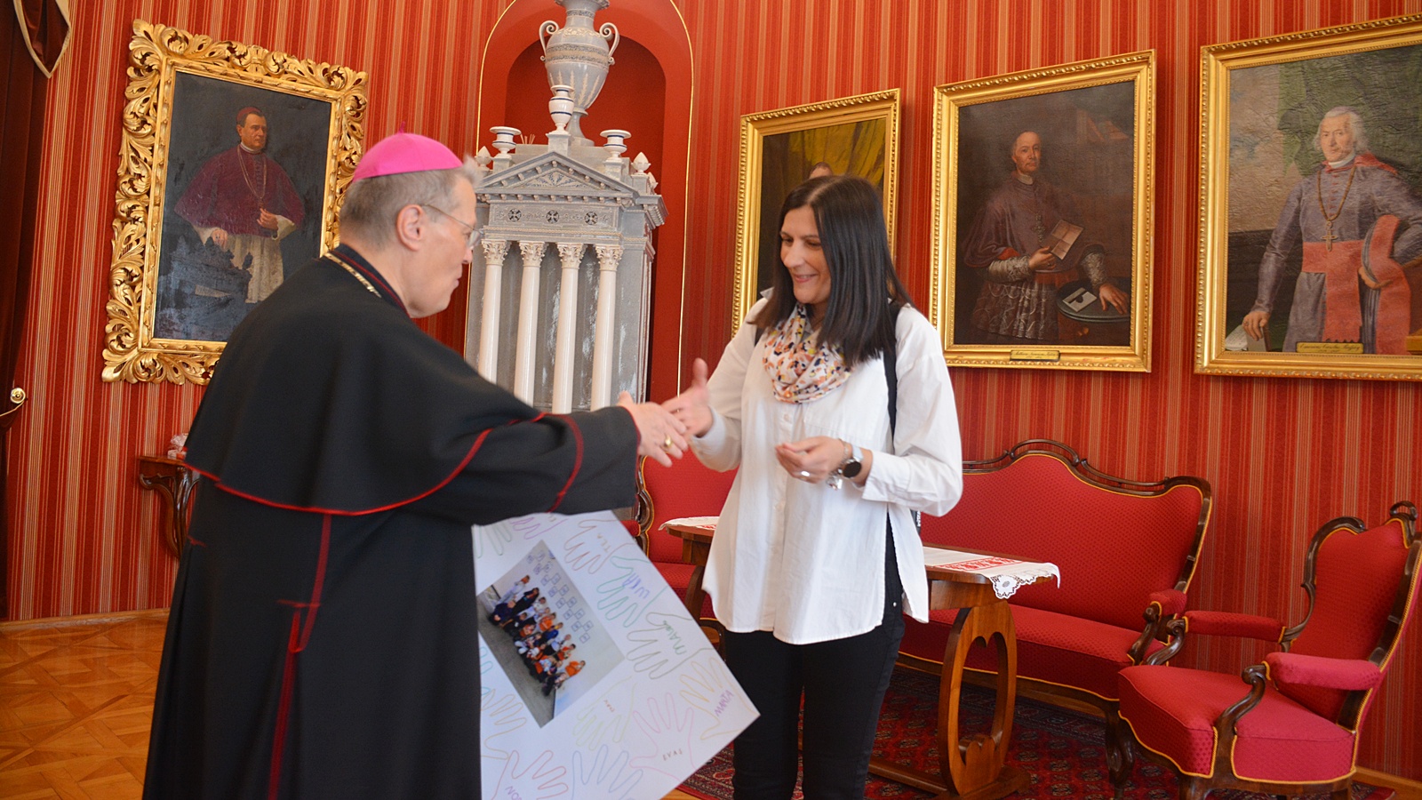 ĐAKOVO (TU) – Učenici i djelatnici prve Katoličke osnovne škole Andrije Živkovića iz Slavonskog Broda u srijedu, 29. listopada 2025. posjetili su đakovačko-osječkog nadbiskupa metropolita Đuru Hranića u Nadbiskupskom domu u Đakovu koji je osnivača te katoličke škole, a cijeli je projekt vodio dr. sc. Pavao Mikulčić, nadbiskupijski povjerenik za katoličke škole i prvi ravnatelj KOŠ Andrije Živkovića.