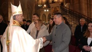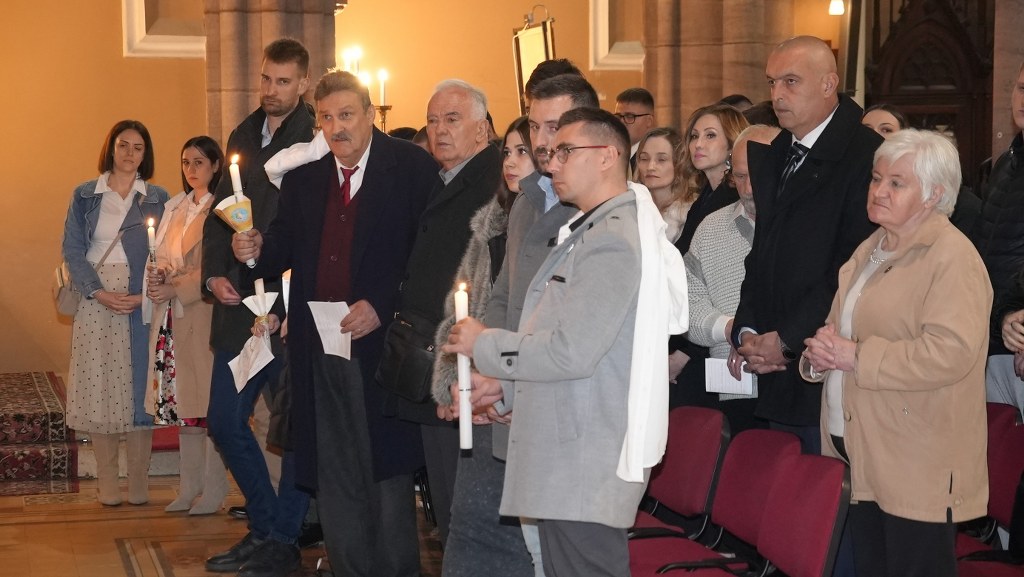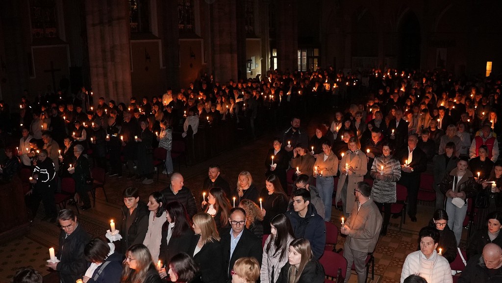 OSIJEK (TU) – Noćas nas rasvjetljuje „Svjetlo od Svjetla“, Božji Sin, koji je i sam postao Adamov sin, da sve što je potamnjelo u ljudskom životu On ponovno rasvijetli. I noćas si želimo, snažnije nego to obično činimo, dozvati u pamet njegovu ljubav, u kojoj je on na sebe preuzeo tamu zla, grijeha i smrti“, rekao je pomoćni biskup đakovačko-osječki Ivan Ćurić, predvodeći, u osječkoj konkatedrali sv.