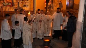 Petra i Pavla, u noći Velike subote, 4. travanja 2026., obrede Vazmenoga bdjenja te podjeljujući sakramente kršćanske inicijacije katekumenima, njih 47, od kojih je 11 primilo sakrament krštenja.
