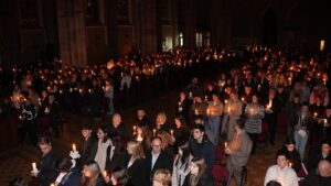 da se žele posve „prekriti“ Isusovim iskustvom poniženja, odbačenosti, ranjenosti i umiranja, i potom – ustati, uzdići se i podignuti glave, obasjani novom istinom – događajem Njegova uskrsnuća. Upravo u tom svjetlu želimo noćas obnoviti i učvrstiti svoj kršćanski život.“