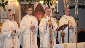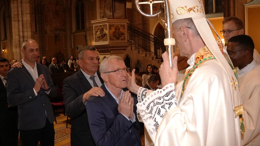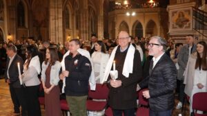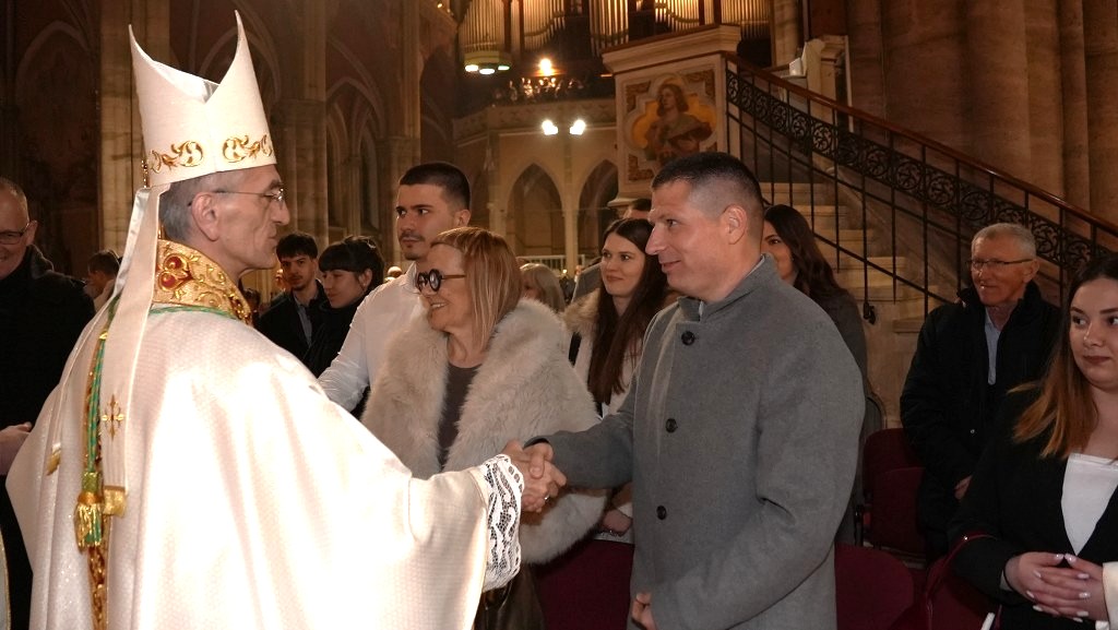 Zvonko Pažin – koji je zajedno s vjeroučiteljicom Elvirom Vrljić pripremao ovogodišnje katekumene za primanje sakramenata – zatim dekan Osječkog zapadnog dekanata i konkatedrani župnik preč. Matej Glavica i povjerenik za pastoralni rad s mladima i domaći župni vikar Filip Sertić.