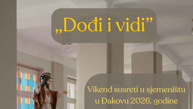 ĐAKOVO (TU) – Bogoslovno sjemenište u Đakovo organizira vikend susrete za mladiće srednjih škola te 7. i 8. razreda osnovnih škola pod nazivom „Dođi i vidi“.