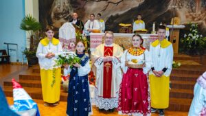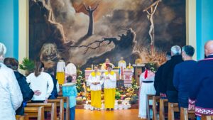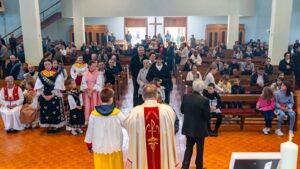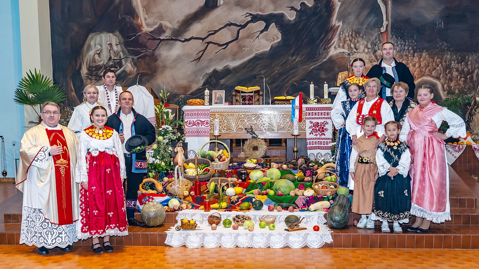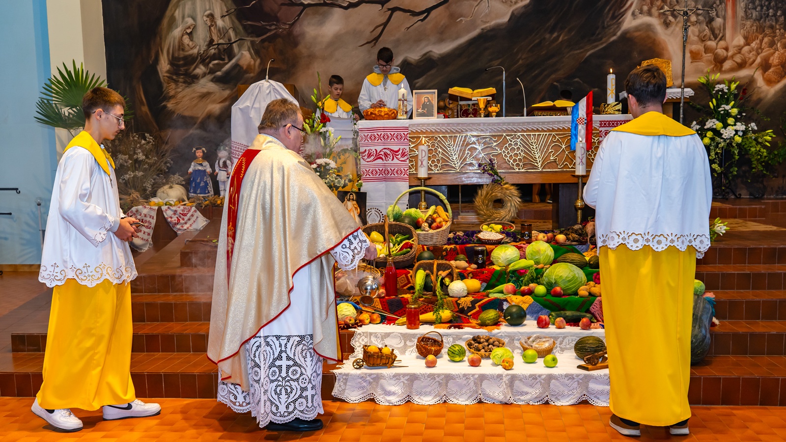 Crkva je bilo posebno svečano urešena slavonskim ručnim radovima, te plodovima njiva i vrtova koje su dan ranije donijeli sami vjernici, a aranžirala je s. Ksenija Franjo koja je na službi u toj župi.
