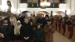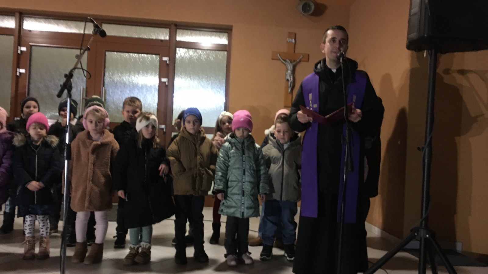 DONJI MIHOOLJAC (TU) – Ispred župnog pastoralnog centra „Ivan Vajda“ u Donjem Miholjcu zapaljena je 29. studenoga 2025. prva svijeća na adventskom vijencu. Paljenju je prethodio program koji su izvela djeca donjomiholjačkog vrtića „Pinokio“ a  koji se sastojao od dvije prigodne pjesme i nekoliko recitacija. Okupljenoj djeci i odraslima obratio se donjomiholjački župni vikar vlč. Domagoj Brkić rekavši: „Za razliku od našega tijela koje treba i spavati naša duša ne smije spavati jer spavajući ćemo puno toga dobroga u životu propustit: neću naći nove prijatelje, neću imati vremena za igru, neću se moći baviti sportom. Tako je i sa nama odraslima, ako se uspavamo, propustiti ćemo puno toga lijepog i dobrog. Započinjemo večeras sveto vrijeme došašća koje je za nas krćane vrijeme kad želimo biti malo više budni, želimo biti malo bolji u našoj pripravi za Božić. Zato su nam djeco važne Mise zornice i tako svoju dušu vježbam da prepoznam kome mogu pomoći, zagrliti – inače će Dobro proći kroz moj život a da ja nisam budnog duha.Vama dragi roditelji još jedna poruka: volim reći radije došašće nego advent jer riječ advent u posljednje vrijeme sve više označava nešto što se ne veže toliko s vjerom – nije protivno vjeri ali nije baš nadahnuto našom pripravom za Isusovo rođenje.”