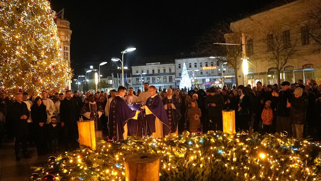Svoju čestitku predstavnicima gradske i županijske vlasti na kraju misnoga slavlja uputio je i konkatedralni župnik Glavica te je sve prisutne pozvao da se zadrže ispred konkatedrale te prisustvuju blagoslovu adventskog vijenca i paljenju prve adventske svijeće. M. Kuveždanin