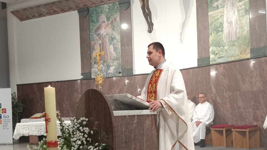 BELIŠĆE (TU) – U crkvi svetoga Josipa Radnika u Belišću u srijedu, 29. travnja 2026. godine, večernje misno slavlje predslavio je fra Dario Mican, vijećnik Provincije franjevaca trećoredaca glagoljaša, provincijski koordinator za kulturu i kulturnu baštinu te doktorand iz područja fundamentalne teologije na Sveučilištu u Münchenu. Bilo je to misno slavlje završetka devetnice u pripravi za proslavu šezdesete obljetnice Župe i Samostana svetoga Josipa Radnika u Belišću. Koncelebrirali su domaći fratri, župnik i gvardijan fra Marko Neretljak te župni i samostanski vikar fra Tomislav Sabađija.