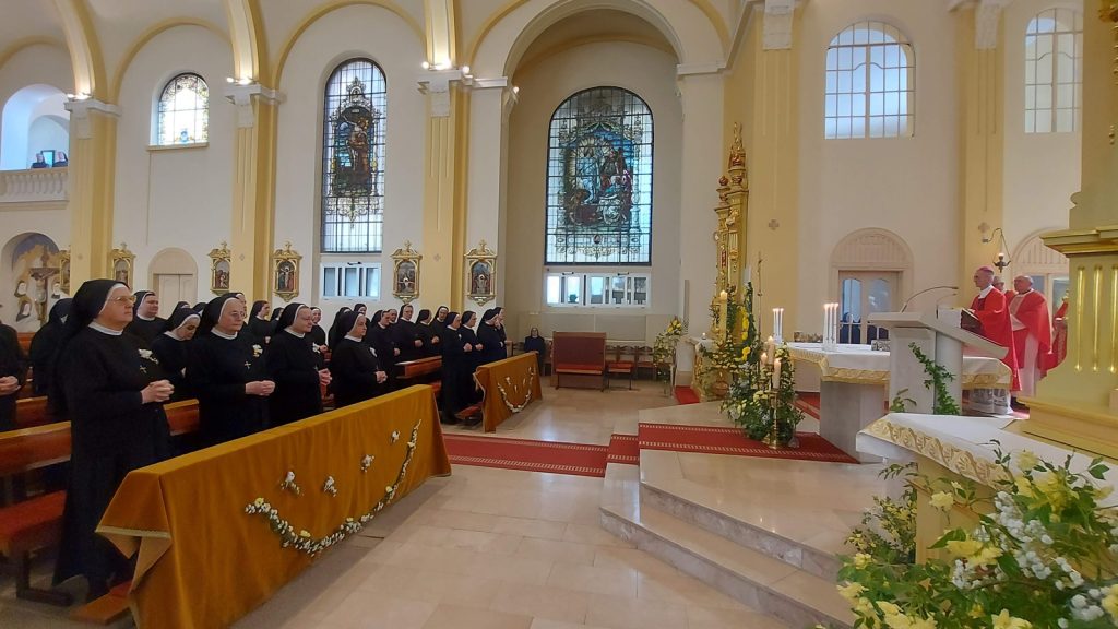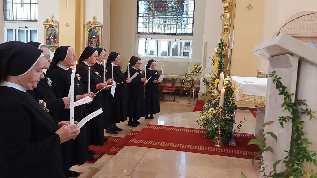Svečanost je pjesmom pratio samostanski zbor, pod ravnanjem s. Josipe Pavle Jakić. Na kraju mise nazočni su, zajedno sa sestrama jubilarkama, još jednom zahvalili Bogu za vjernost u njegovoj službi himnom Tebe Boga hvalimo. Po završetku mise slavljenice su se uputile u Dvoranu sv. Josipa, gdje im je mons. Ćurić zajedno svećenicima i sestrama poglavaricama, čestitao jubilej.