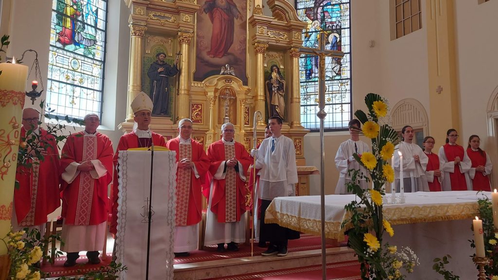 Euharistijsko slavlje predvodio je đakovačko-osječki pomoćni biskup Ivan Ćurić u koncelebraciji s vlč. mr. Dariom Hrgom, kancelarom Nadbiskupskog ordinarijata, vlč. Alojzom Kovačekom, župnikom Župe Svih svetih u Đakovu, preč. Matom Gašparovićem, vlč. Mirom Tomasom i p. Borisom Jozićem SJ.