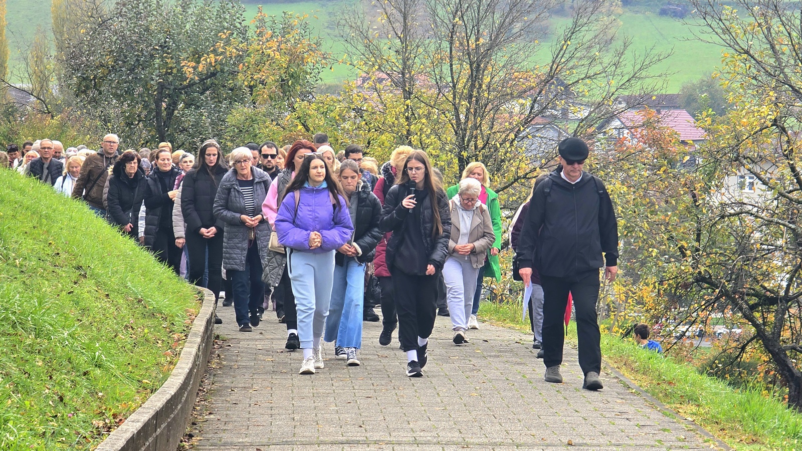 Put prema Mariji Bistrici započeo je zajedničkom molitvom Apostolskog vjerovanja, nakon čega su hodočasnici nastavili moliti slavna otajstva krunice. Nakon svakog desetka župnik je čitao molitvu Majci Božjoj te uputio kratka, ali duboka promišljanja o molitvi jednih za druge, o majčinstvu, kumstvu i ženama koje noše čežnju za darom roditeljstva. S posebnom je pažnjom pozvao na molitvu za mir u svijetu – u Ukrajini, Gazi i Svetoj zemlji – kao i za mir u našim obiteljima i srcima.